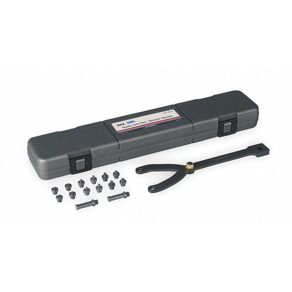 Spanner Wrench, Application Adjusts From 1 1/4 to 5 in To Fit Pulleys With Holes Including Camshaft And Crankshaft Pulleys, Material Metal, Number of Pieces 16, For Use With 1/2 in Ratchet Or Breaker Bar, Includes 2 Each 3.5, 4, 4.5, 5, 6, 7, & 10mm Pins, & Case