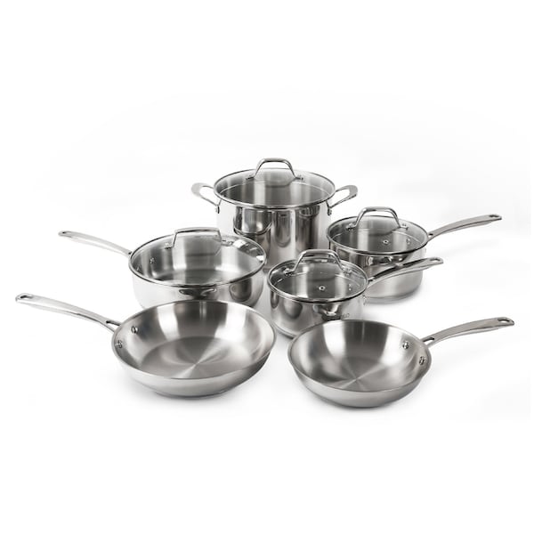 10-Piece Tri-ply Stainless Steel Pots and Pans Cookware Set, Silver (Discontinued)