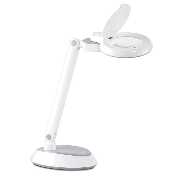 The OttLite is a lamp and magnifier all in one With an articulating arm and pivoting head with 4 points of adjustment, you'll be able to position the super bright LEDs anywhere you need A 3inch, 175x opticalgrade magnifier helps you see intricate details with ease There's a flip cover on the magnifier to protect the lens when not in use and the lamp easily folds for compact storage With OttLite Natural Daylight LED Illumination, you can see details clearly and reduce glare and eyestrain so you can do what you love, longer High contrast, low glare OttLite illumination is specially designed to help you see clearly and comfortably Articulating arm with pivoting head 4 points of adjustment for precise positioning Easily folds for compact storage 3inch 175x opticalgrade magnifier with 4x spot viewer flip cover on magnifier closes to protect lens when not in use Maximum output of 360 lumens Super bright natural daylight LEDs rated to last up to 40,000 hours