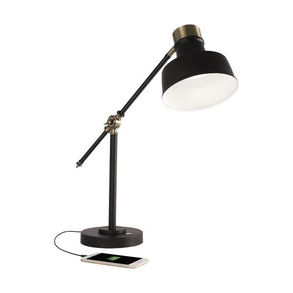 Finished in black with antique brass accents, the Balance LED Desk Lamp is a perfect fit for any study, office, living room or bedside. OttLite's ClearSun LED technology is proven to reduce eyestrain by up to 51 percent. It provides smooth, uniform light with color rendering index CRI of 97. Maximum output is 428 lumens. Energy-efficient LED is rated to last up to 40,000 hours. With classic counterbalance design, you're in complete control with this fully customizable lamp. Adjust the light angle at arm and shade. Change the color temperature ClearSun natural daylight, bright white and warm white. Select from three brightness levels. Memory feature remembers your last setting for color temperature. Height of the 10'' arm from pole to shade adjusts from 4'' to 18''. Lamp also features a 5-volt, 2.1A USB port that lets you fully and quickly charge your devices.