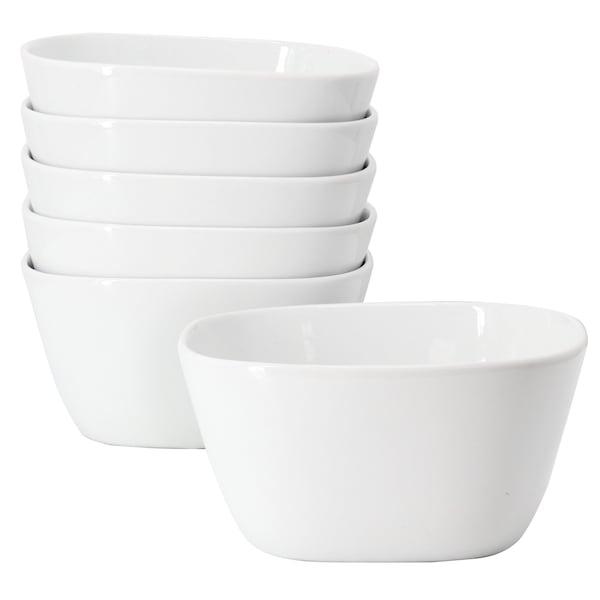 Simply White 6 Piece 6 Inch Porcelain Soft Square Cereal Bowl Set