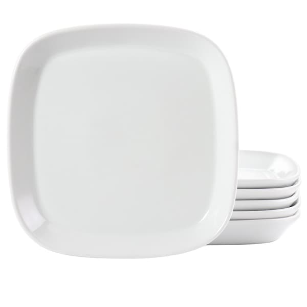 Simply White 6 Piece 8 Inch Square Fine Ceramic Salad Plate Set in White