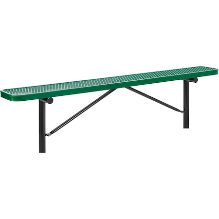 8ft Outdoor Steel Flat Bench, Expanded Metal, In Ground Mount, Green