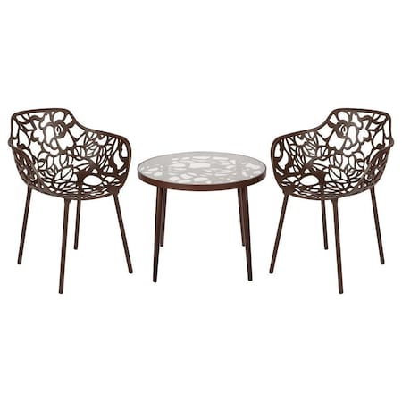 Devon 3-Piece Outdoor Patio Dining Set, Tempered Glass Top Table & 2 Stackable Arm Chairs, Brown