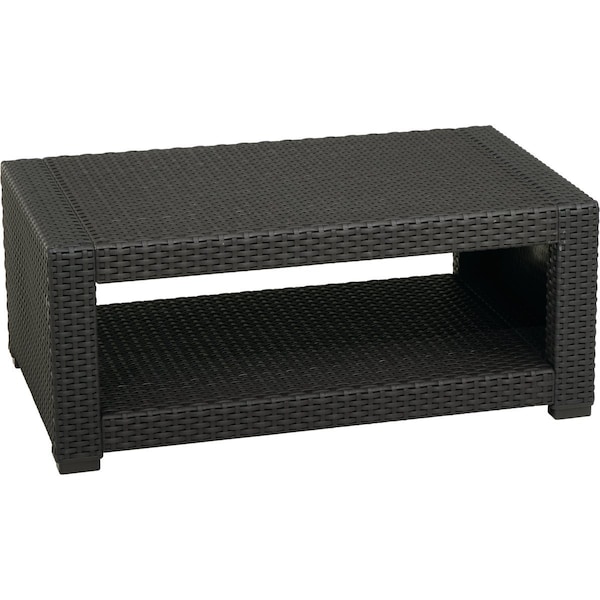 Relax in style with this faux wicker set. Lightweight in design the resin frames bring durability while the gray cushions bring comfort. You get the traditional wicker look with long lasting results. The rectangular table rounds out the set featuring an additional shelf underneath for the latest book you are reading. Made with PFAS-free fabric.