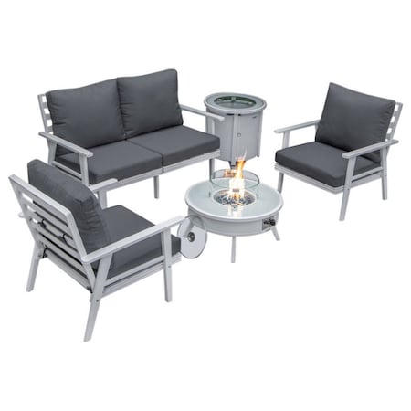 Walbrooke White Patio Conversation, Round Fire Pit with Slats Design & Tank Holder, Light Grey