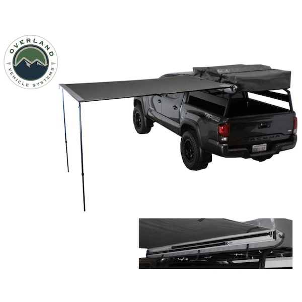 Bag Awning; Roof Rack Mounting; Manual; 98.5 Inch x 101.5 Inch; 69 Square Feet of Cover; Poly Cotton; Black; With Aluminum Poles/ Shock Cords/ Stakes/ Travel Cover/ Bracket and Hardware/ Tie Down Kit