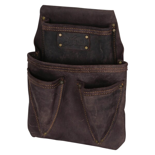 Built with the tradesman in mind, the OX Pro Top Grain Oil Tanned Leather 3 pocket nail pouch is tough, dependable, and comfortable. Crafted form high quality oil tanned leather, the pouch is designed to handle the rigors of any jobsite and perform in the harshest environments. The hook and rivets are made from iron and electrophoretic coated for extreme durability. One primary pocket holds tools or other larger items while Three secondary pouches fit fasteners or small tools. The pouch fits 3 Inch belts and is a great addition when creating the ultimate tool rig.