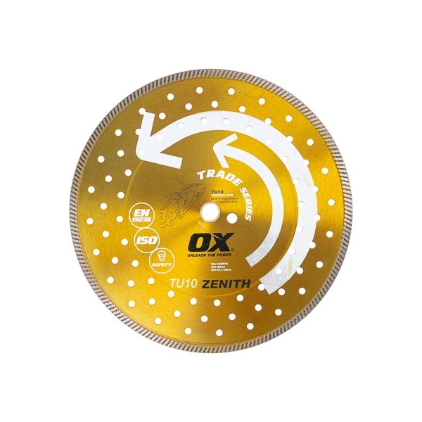 The OX TU10 Trade Series blade is guaranteed to cut granite, clay products, engineering bricks, concrete products and building materials. The OX Trade Series Diamond Blades allow users to get value for money without compromising on performance or safety. Not only are these the best blades available at this price level, they also offer the most comprehensive and clear choice. The OX TU10 blade is designed to work with angle grinders, circular saws, power saws and tile saws.