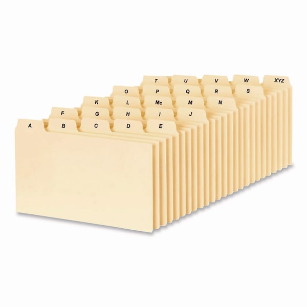A-Z Index Card Files, 1/5-Cut Top Tab, Assorted Position, 3 x 5, Manila, 25PK