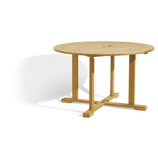 The slatted top with octagonal banding gives our round dining table a sophisticated, graceful styling and the round design offers optimal seating versatility. The table features a 4 leg pedestal, and will accommodate up to six Side Chairs.