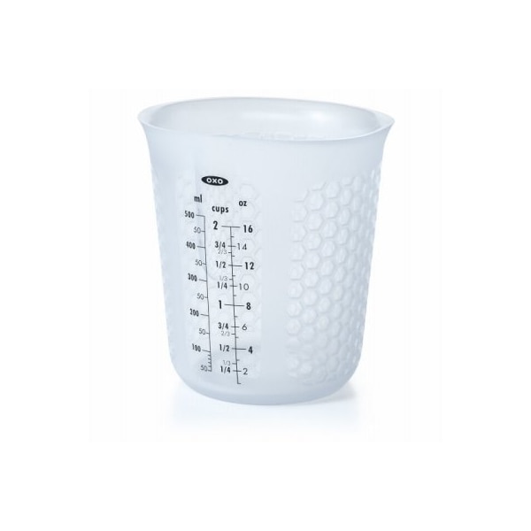 With a flexible body and spout, the Squeeze, Pour Silicone Measuring Cup makes it easy to mix, measure, microwave and pour all from the same Measuring Cup The specialized honeycomb pattern protects your hands by dissipating heat and a simple squeeze forms a precise pour spout