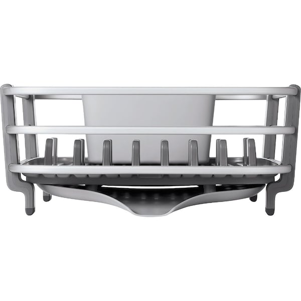 The OXO Good Grips Aluminum Frame Dish Rack combines the versatility of an open-design platform with the durability of an aluminum frame. The adjustable drain board and removable utensil cup let you take control of your countertop. Unique plate racks open center and sturdy frame.