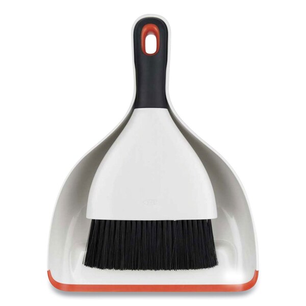 Good Grips Dust Pan and Brush, 12 x 9, 2 in. Handle, Plastic, White (Discontinued)