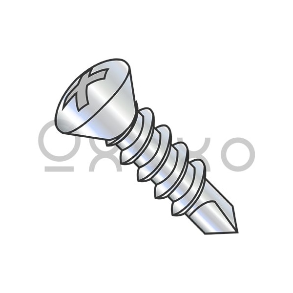 10-16X1 1/2 Phillips Oval Self Drilling Screw Full Thread Zinc and Bake, 4000PK