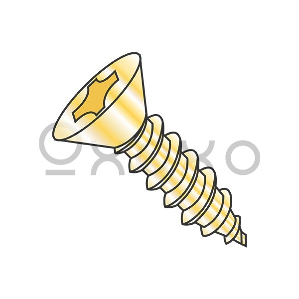 10-16X1 1/4 Phillips Flat Self Tapping Screw Type AB Fully Threaded Zinc Yellow And Bake, 4000PK