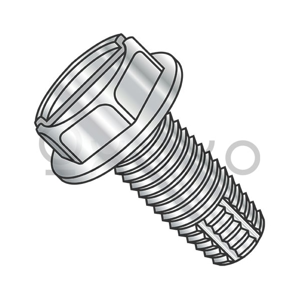 10-24X3/8 Slotted Indented Hex Washer Thread Cut Screw Type F Full Thread 410 Stainless St, 4000PK
