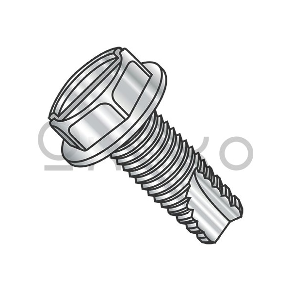 10-24X3/8 Slotted Indented Hexwasher Thread Cutting Screw Type23 Fully Thrd 18-8 Stainless, 4000PK