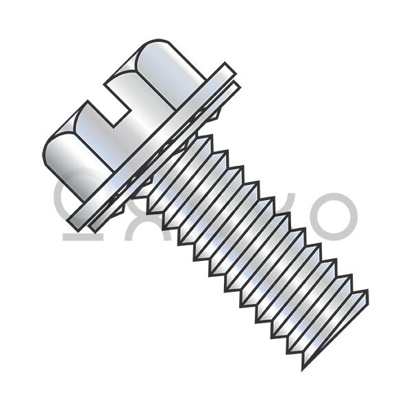 10-32X3/4 Slotted Indent Hexwasher Internal Sems Machine Screw Full Thread Zinc and Bake