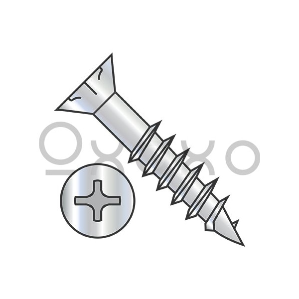 10-9X1 1/4 Phillips Flat Head w/Nibs Deep Thread Wood Screw 2/3 Threaded Zinc Bake, 4000PK