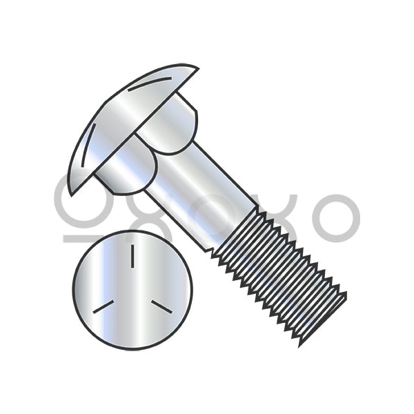 1/2-13X9 Carriage Bolt Grade 5 Partially Threaded 6in Thread Under Sized Body Zinc