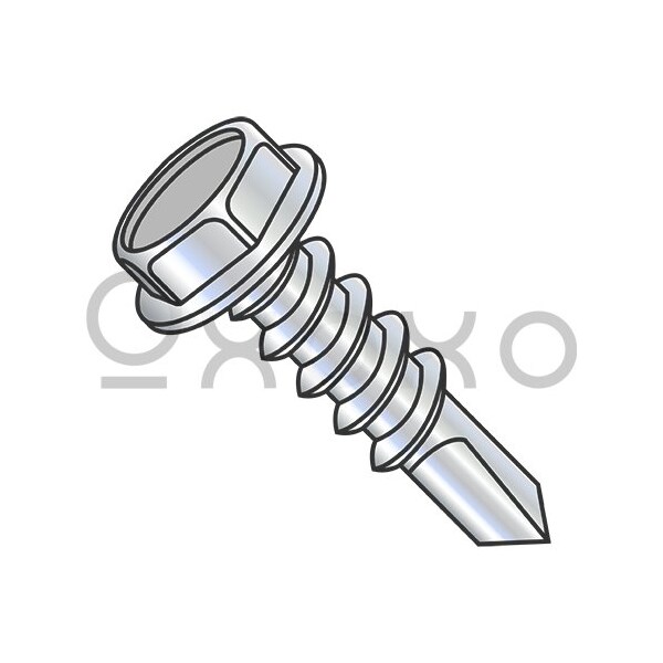 12-14X1 Unslotted Hexwasher Number 4 Point Self Drill Screw Full Thread Zinc and Bake