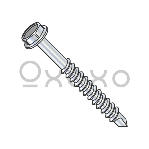 1/4-14X7 Unslotted Indented Hexwasher Self Drill Screw Partial Thread Zinc and Bake, 400PK
