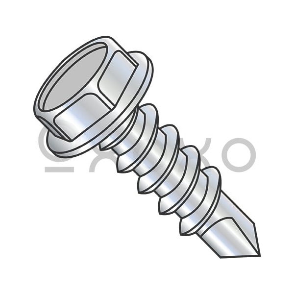 4-24X3/8 Unslot Indented Hexwasher Self Drill Screw Non-Serrated Full Thread Zinc Bake
