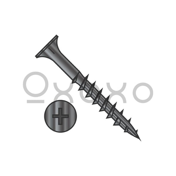 6-13X3/4 Phillips Flat Head with Nibs Deep Thread Wood Screw with Type 17 Point Black Ox