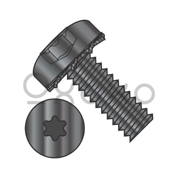 6-32X1/4 Six Lobe Pan Head External Tooth Sems Machine Screw Full Thread Black Zinc Bake, 10000PK
