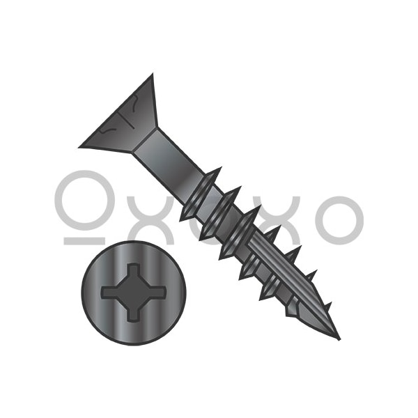 8-11X1 5/8 Square Phil Drive Flat w/Nibs Deep Thread Wood Screw 2/3 Thread Type 17 Black Ox, 5000PK