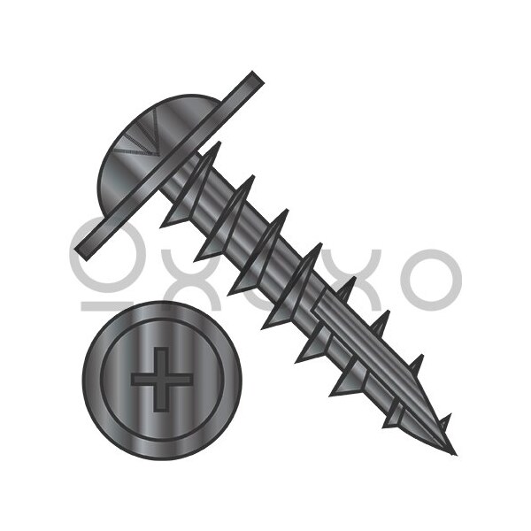 8-11X1 Phillips #10 Round Washer Hd Deep Thread Wood Screw Type17 Full Thread Black Ox, 7000PK