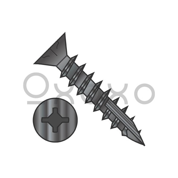 8-11X1 Square Phil Drive Flat w/Nibs Deep Thread Wood Screw Full Thred 17point Black Ox, 10000PK