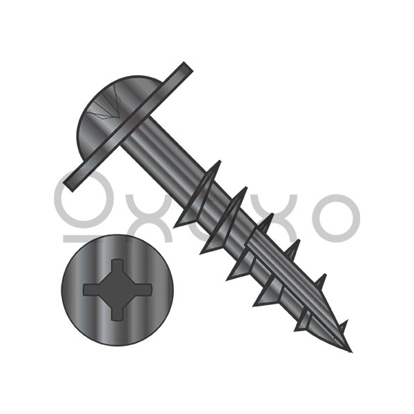 8-11X3 Square Phillips Drive Round Washer Deep Thread Type17 2/3 Thread Black Oxide, 1000PK