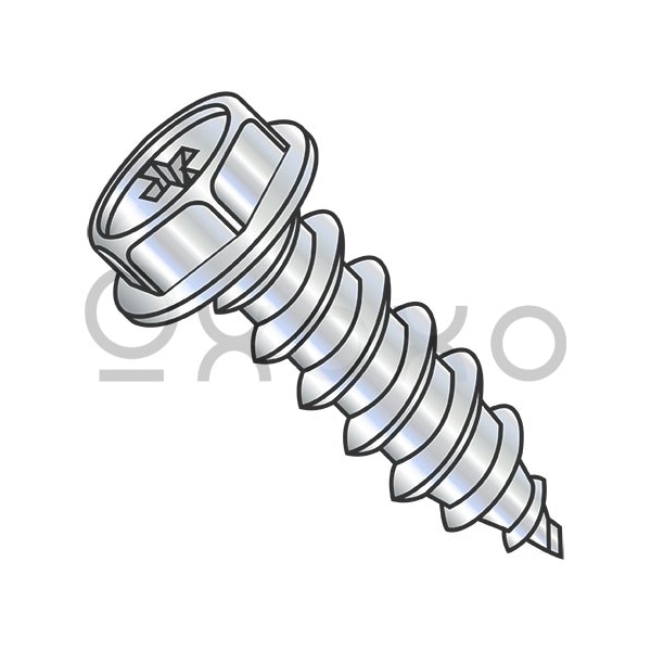 8-15X1 1/4 Phillips Indented Hex Washer Self Tapping Screw Type A Fully Threaded Zinc And B, 4000PK