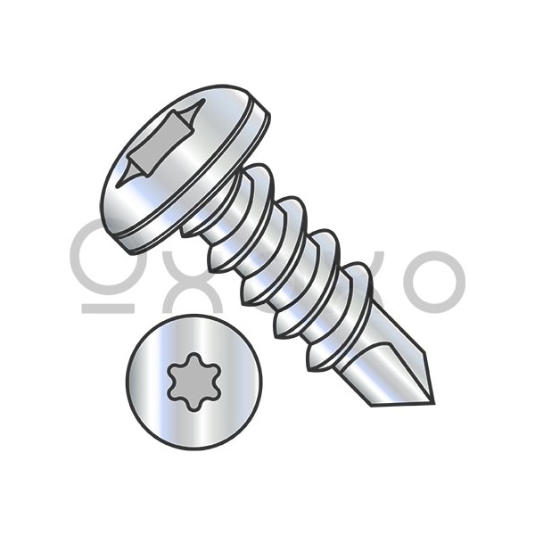 8-18X1 1/2 6 Lobe Pan Self Drilling Screw Fully Threaded Zinc and Bake, 4000PK