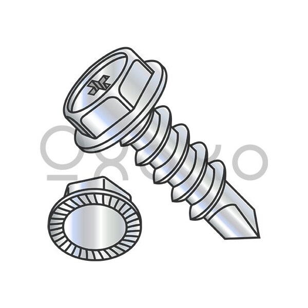 8-18X1/2 Phillips Hexwasher Serrated Self Drilling Screw Full Thread Zinc and Bake, 10000PK