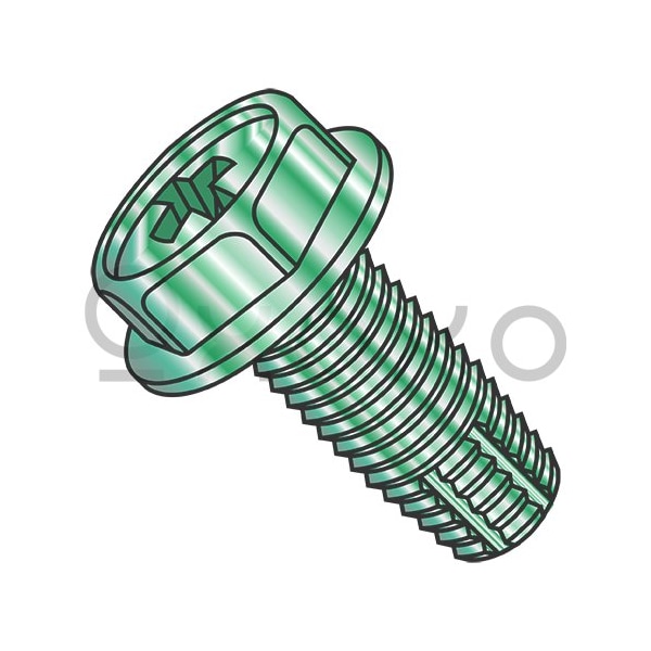 8-32X3/8 Phillips Ind Hex Wash Grounding Screw Type F Full Thread Zinc GreenBake, 10000PK
