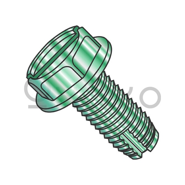 8-32X3/8 Slot Indent Hex Washer Thread Cutting Scr. Type 1 Fully Threaded Zinc Bake Green