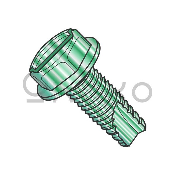 8-32X3/8 Slotted Ind Hex Wash Grounding Thread Cutting Scrw Type 23 Fully Threaded Zn Grn, 10000PK