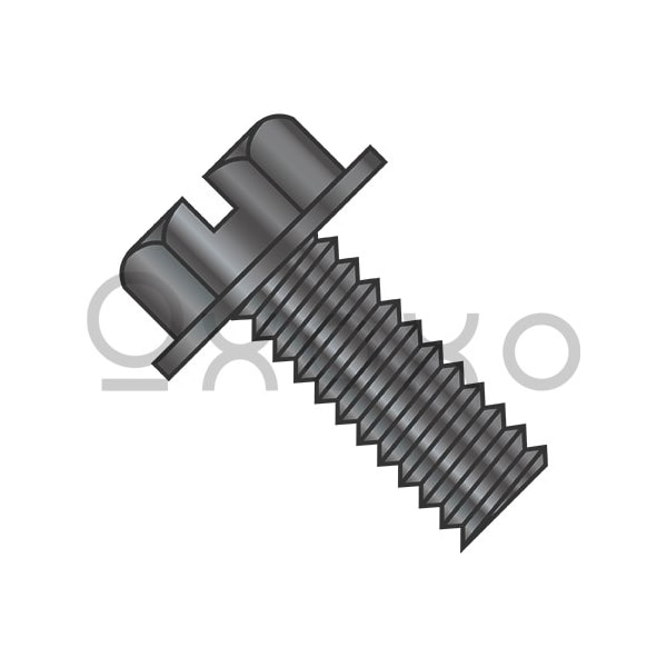 8-32X5/16 Slotted Indented Hex Washer Head Machine Screw Fully Threaded Black Oxide, 10000PK
