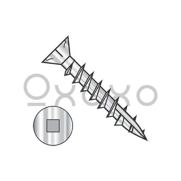 8-8X1 Square Drive Flat Head Nibs Deck Screw Type 17 Full Thread 18-8 Stainless Steel, 2000PK