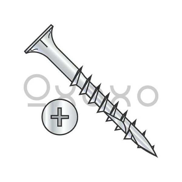 8-9X1 1/4 Phillips Flat w/Nibs Coarse Thread Wood Screw 2 Type 17 2/3 Thread Zinc Bake, 5000PK