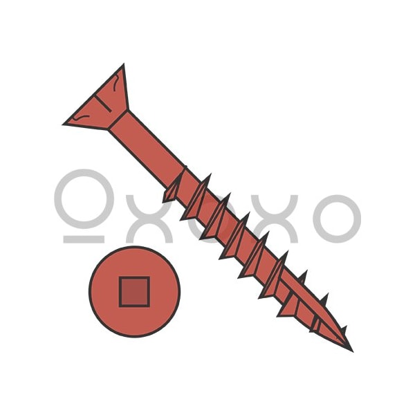 9-9X2 1/2 Square Flat Nibs Deck Screw Type17 2/3 Thread Red Ceramic 1,200HR Salt Spray, 2000PK