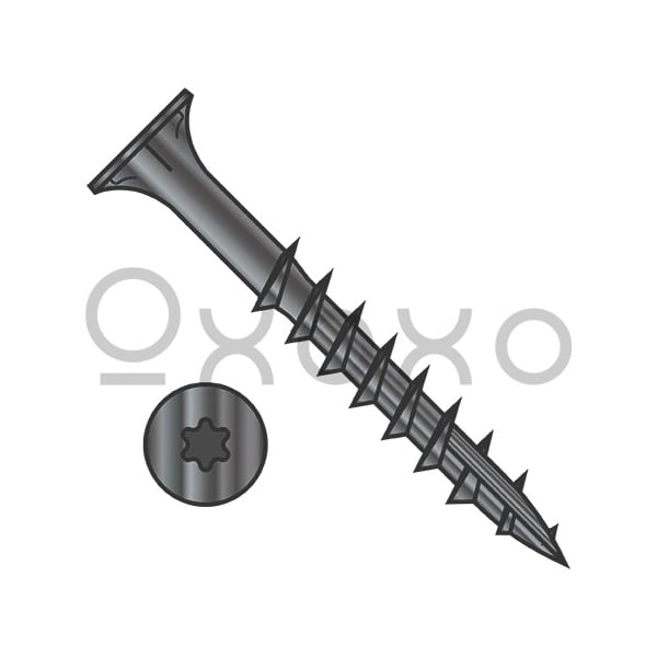 9X2 1/2 6 lobe Flat w/Nibs Deep Thread Wood Screw Type 17 2/3 Thread Black Oxide, 2200PK