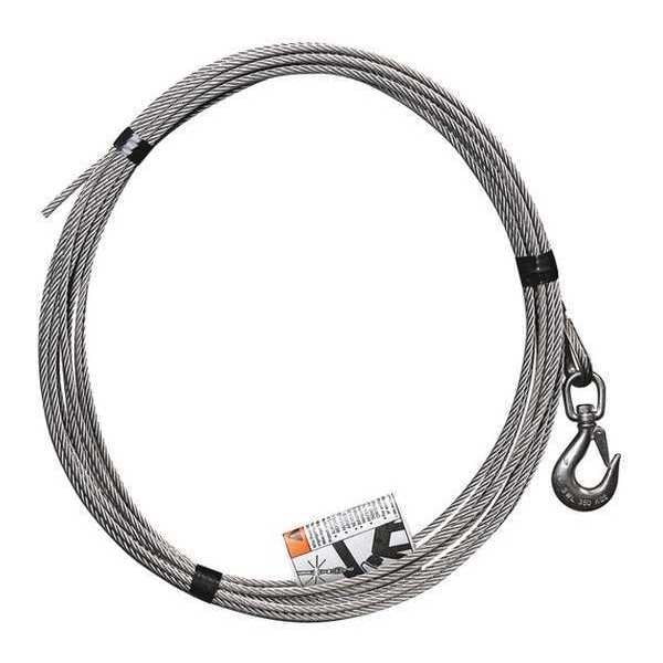 Cable Assembly, Cord Diameter 1/4 in, Cord Length 45 ft, Color Silver, Maximum Load Capacity 1,200 lb, Compatible Load Capacity 1,200 lb, Compatible Series OZ Lifting Products, Compatible with Grainger Part Number 48RD46, 48RD49, 48RD50, 48RD56, 48RD57, Compatible with Manufacturer Part Number OZ1000DAV-ACW, OZ1000DAV-DCW, OZ1200DAV-ACW, OZACW, OZDCW, Cord Type Cable, Cord Material Stainless Steel, Number of Strands 7 x 19, For Use With Winches