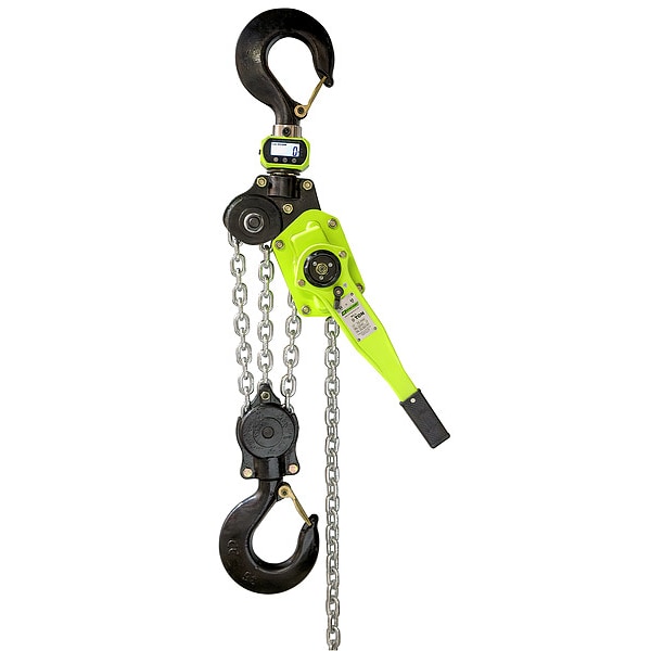 Lever Chain Hoist, Chain Length 60 ft, For Minimum Beam Flange Width Not Applicable, For Maximum Beam Flange Width Not Applicable, Headroom 32 7/16 in, Includes Brake Brake Included, Lifting Hook Type Swivel Hook with Safety Latch, Maximum Lifting Capacity 18,000 lb, Maximum Lifting Length 20 ft, Mount Type Hook Mounted - No Trolley, Body Material Steel, Brake Type Weston Style, Chain Grade Grade 80, Chain Material Dacromet, Color Green