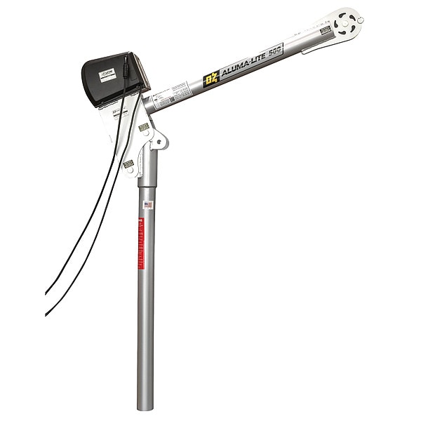 Davit Crane, Maximum Lifting Capacity 500 lb, Minimum Lifting Height 46.9 in, Maximum Lifting Height 74.4 in, Boom Length Adjustability Fixed, Number of Boom Length Positions 1, Minimum Adjustable Boom Length Not Applicable, Maximum Adjustable Boom Length Not Applicable, Boom Weight 32 lb, Color Silver, Compatible Base Grainger Part Number 54YM54, 54YM55, 54YM56, Compatible Base Manufacturer Part Number OZPED3, OZSOC3, OZWALL3, Control Type Wired Control, Included Components Winch