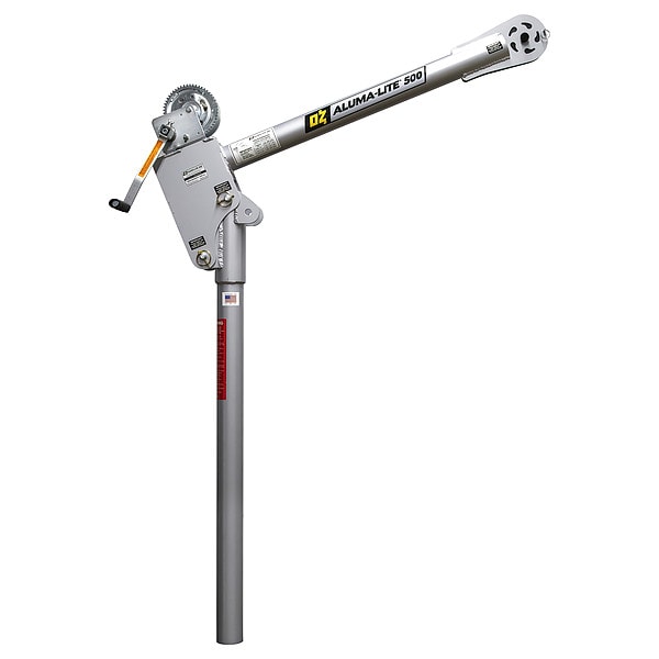 Davit Crane, Maximum Lifting Capacity 500 lb, Minimum Lifting Height 46.9 in, Maximum Lifting Height 74.4 in, Boom Length Adjustability Fixed, Number of Boom Length Positions 1, Minimum Adjustable Boom Length Not Applicable, Maximum Adjustable Boom Length Not Applicable, Boom Weight 20 lb, Color Silver, Compatible Base Grainger Part Number 54YM54, 54YM55, 54YM56, Compatible Base Manufacturer Part Number OZPED3, OZSOC3, OZWALL3, Control Type Drill Driver, Manual Handle