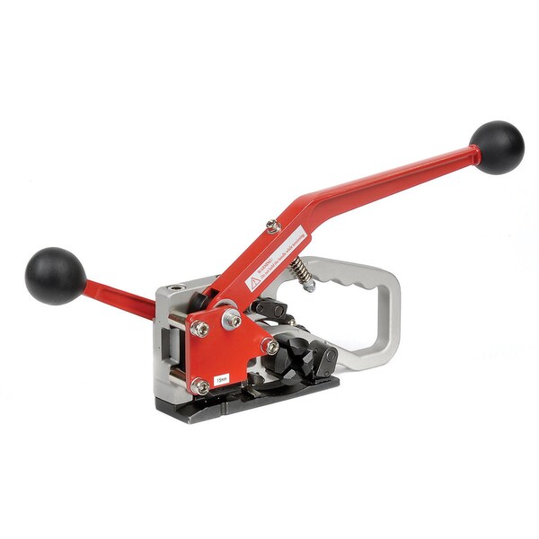 Easy operation. Tensions, seals and cuts plastic strapping and applies a serrated seal in one step with a 1/2 strap width. Windlass mechanism and handle provide superior tensioning capacity with minimal effort.